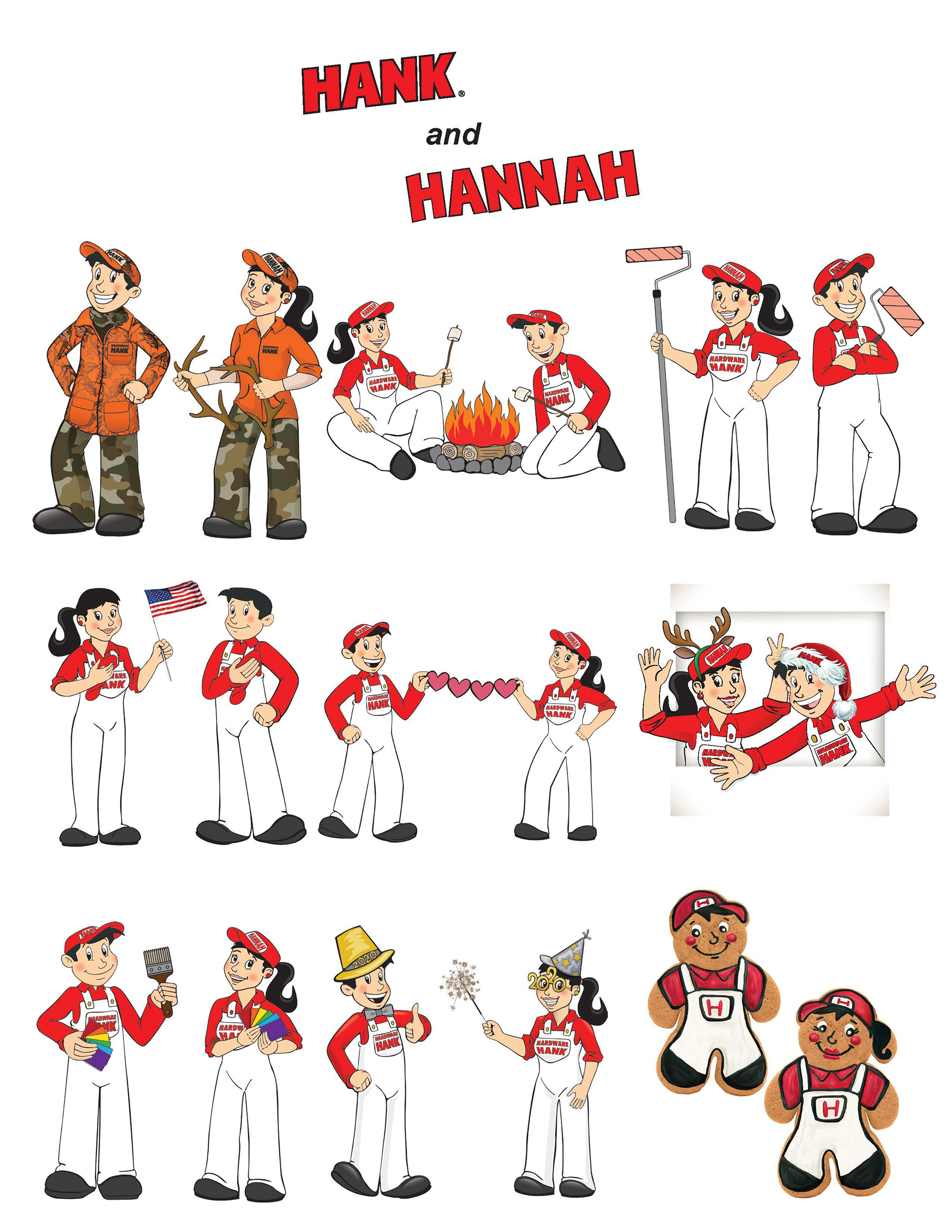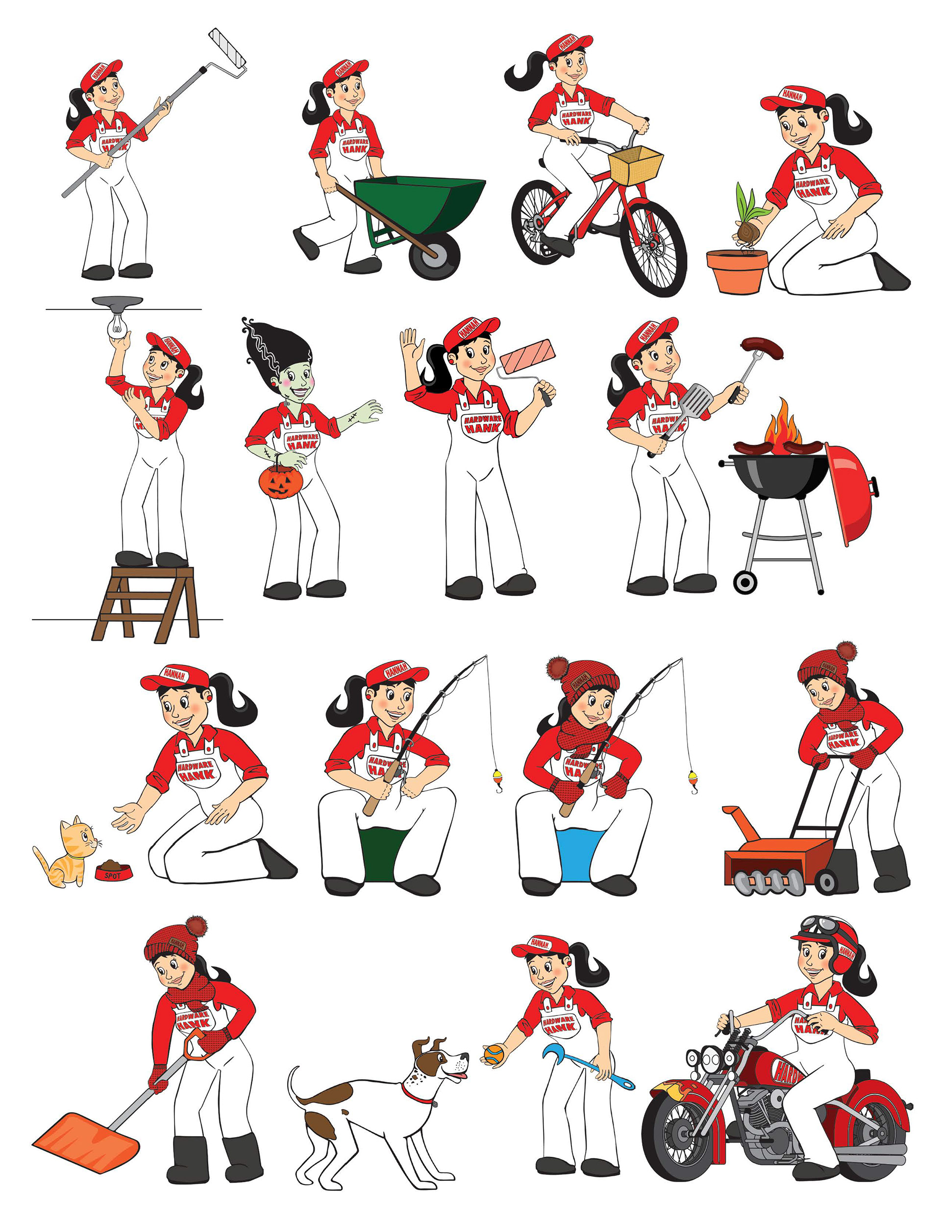 Taking established characters in the Hardware Hank brand and giving them further characterizations. Such as with facial expressions and illustrating them in new interactions.