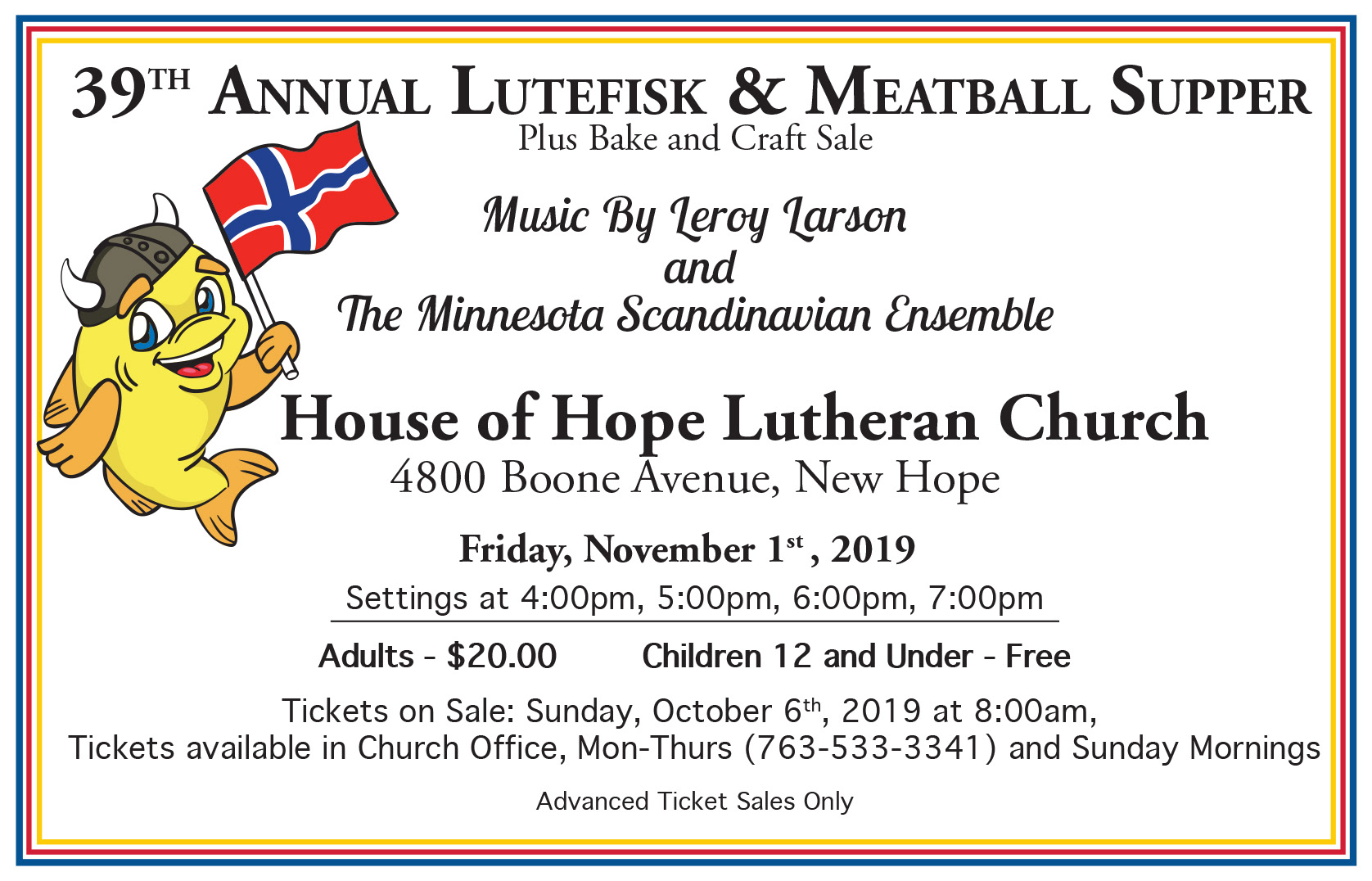 Worked with House of Hope church to create flyer for their annual Lutefisk & Meatball Supper. Also illustrated a Norwegian and Swedish fish design as the mascot of the event.