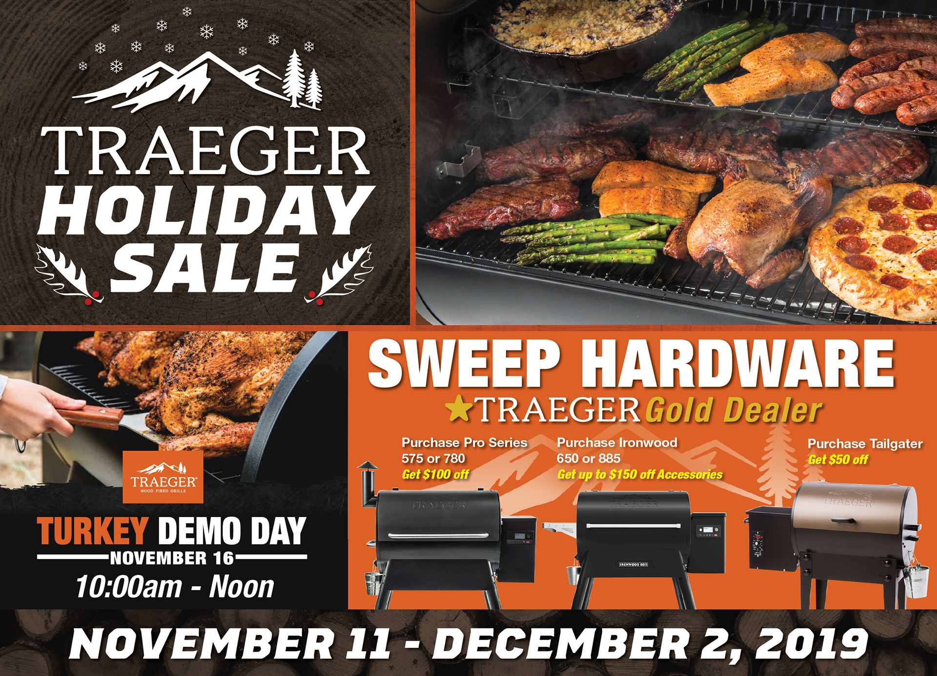 Store event postcard featuring demo and sale information specific to Traeger Grills