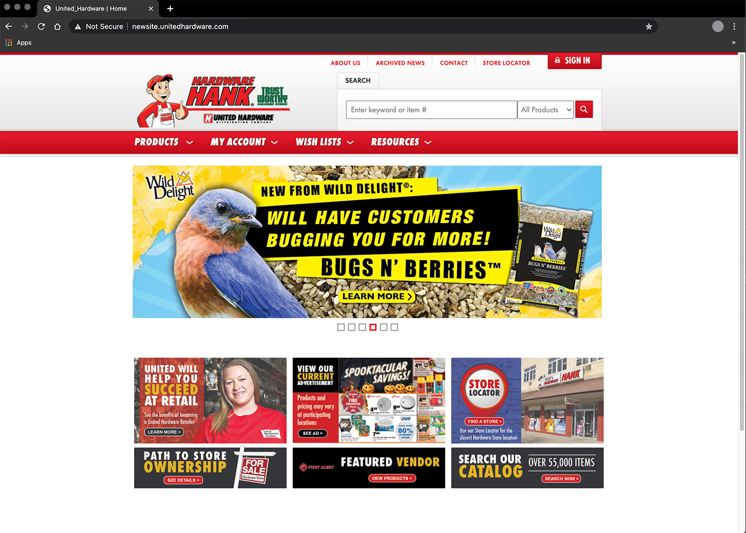 Web Banners designed for featured product for United Hardware Retailers to bring into their stores. A banner would be designed for the front page feature and for a secondary page with product information.